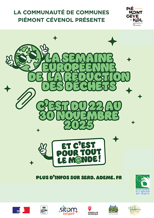 Dans le cadre de la Semaine Européenne de la Réduction des Déchets (SERD), la Communauté de communes du Piémont Cévenol propose, tout au long de la semaine du 24 au 28 novembre, plusieurs animations gratuites autour du numérique responsable, du réemploi et du tri des déchets.